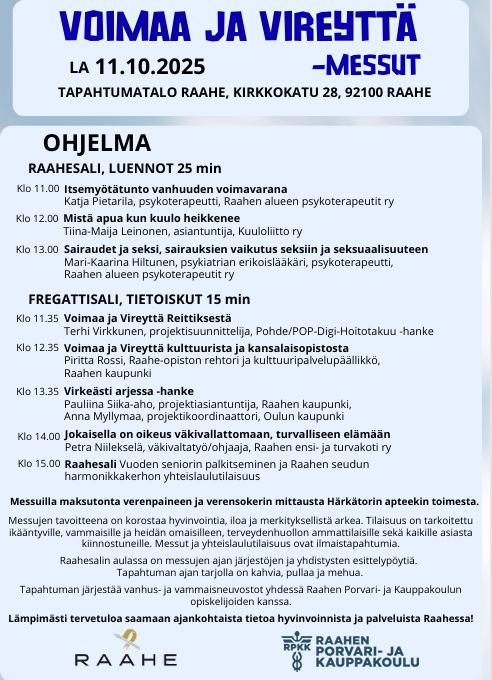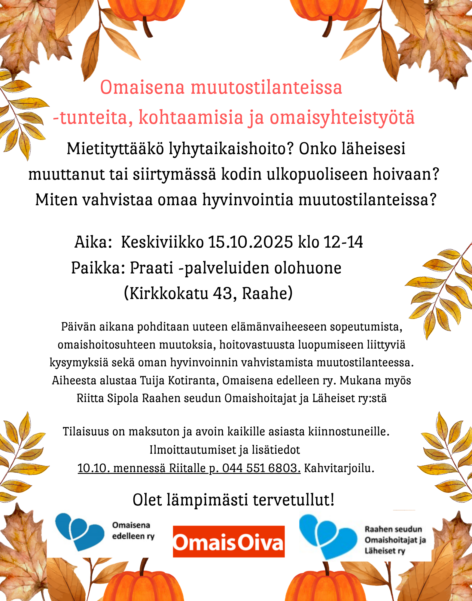 OmaisOiva toimisto avoinna poikkeuksellisesti klo 9-12 Kauppakeskus Mastossa 2.krs (Ollinkalliontie 3, Raahe). OmaisOivan työntekijän tavoitat henkilökohtaisesti toimiston aukioloaikaan, muulloin myös puhelimitse ja sähköpostitse. Voit varata henkilökohtaisen neuvonta/keskusteluajan sinulle sopivaan ajankohtaan. Ota rohkeasti yhteyttä, jos kaipaat tietoa, tukea tai kuuntelijaa! Toimistolla myytävänä mm.…